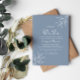 Detta minimala dammiga ro innan vi gör en förnyad middagsinbjudan är perfekt för en rustisk bröllop-repetition av firande. Konstruktionen har örter för vattenfärgsfärgers vild i en dammig blå bakgrund.