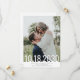 Bröllop "Save the Date" 5x7 Vertikal Kort med en enkel, modern typografisk design med stort tunt datum överlagt ovanpå ditt foto som du laddar upp till mallen och skriver in era namn och bröllopsplats och datum för en snabb och enkel design som fungerar med vilket tema du än väljer senare. Bakgrundsfärger och typsnitt kan redigeras för att matcha ditt färgschema, och du kan lägga till mer information eller ytterligare foton på baksidan.