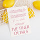 Designad att samordna med för "Bright" Wedding-inbjudningssamlingen. Om du vill ändra information klickar du på Information. Om du vill flytta texten eller ändra storlek, teckensnitt eller färg klickar du på Redigera med Design Verktyg. Visa samlingslänken på den här sidan om du vill se alla matchande objekt i den här vackra designen.