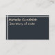 Ett affärskort med en enkel och minimalistisk utformning som är modern och inte tittar billigt. Kortets framsida visningar namn, rubrik, adress, e-post och mobilt nummer. Kortets baksida har en enkel utformning med endast namn och titel, samt linjer som ge har ett intryck av elegant. Det här affärskortet är lämpligt för företag som vågar framstå som enkla men inte som billigtar.