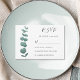 Det här minsta kortet för hölje med bröllop OSA har vattenfärgen eukalyptus och snyggtens skripttypografi. Enkelt anpassade. Ursprunglig vattenfärg © Michele Davies.