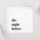 Ett modernt val i svartvitt: Den här bröllop-inbjudan till repetitionsmiddagen har fet typografi "Natten före" på framsidan och din information på baksidan. Anpassa den här bröllop-middagsmallen med egna uppgifter om ceremonin och den därpå följande repetitionsmiddagen. Innehåller tillräckligt med utrymme för datum och plats för bröllop-repetitionen och din middag.