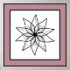 Minimalistisk svartvit blommigt mandala med tunna svarta konturer inom ett lila gräns, precis i tid för vår och sommar.