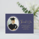 Det minsta tacket du kan få med ett guld, en marin och vit oval för att belysa student porträtt. Ett fet skript-Tack tillför också en smula elegans till det här marinblåkortet.