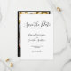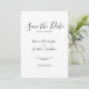 Inbjudningskortet i Bröllop spara datum har en elegant, modern och minimal typografisk utformning med ett svartvit färg-system. Redo för dig att anpassa dig med informationen om din speciella dag och lägga till ditt eget foto på baksidan av kortet. Bläddra i Black White Minimal Elegant bröllop Suite om du vill matcha mallobjekt.