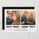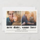 Contemporary och minsta bildtypografi med fet stil, fotokort för att skjuta upp bilder. Modern minimal och toppen ändrar datumkortet för att meddela din gäst att dina bröllop-planer har ändrats. Annan tillgänglig färg