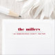 Modern och djärv returadressetikett med din familj namn och adress i modern jultomatruby-röd koordinat till minimal insamling av grafik Helgdag