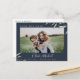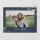 Modern chic vattenfärg botaniskt bladverk grönt med par-foto på färg redigerbar marin blå bakgrund, enkel och elegant, underbar foto sparar datumkortet för modernt bröllop, rustiskt bröllop och botaniskt trädgårdsbröllop i vår och sommar. Visa alla matchande delar i samlingen