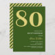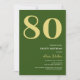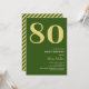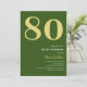 Eleganta guld- och gröna 80-årsfirande inbjudningskort med siffran '80' i en stor, fet serif-teckensnitt, och en modern mall som är lätt att anpassa.