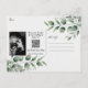 Minimal Grönska Lämnar Modern Vit Spara Datumet Meddelande Vykort