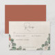 Svarskortet i bröllop utan middagsval har en enkel grönt med mjuka vattenfärger och spraysprej med rost på en vintage som är utsatt för krämer. Det är känsligt, elegant och underskattat. Skapat av Farmhouse Press.