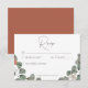 Svarskortet i bröllop utan middagsval har en enkel grönt med mjuka vattenfärger och spray med rost från eukalyptus på den bakgrund du väljer på papperet. Det är känsligt, elegant och underskattat. Skapat av Farmhouse Press.