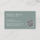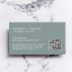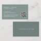 Professionell för minimal och elegant grönt med namn, titel och kontaktinformation (t.ex. e-post, telefonnummer, fast namn och utskickande adress) i ren, enkel och modern, vit text. Skicka webbplatsen adress för att skapa en skannerbar QR-kod som är länkad till webbplatsen, medieprofilerna i social eller någon annan plattform som visar ditt arbete och skapar det enkelt för andra att utforska din expertis. På baksidan anpassar du ytterligare text eller lämnar tom.