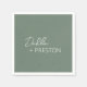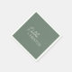 Moderna napkins av oliv grönt grönt/sage med bröllop som har en enkel och minimal design med bridens namn i ett elegant-skript och rummens namn i en contemporary sans serif-teckensnitt. Dessa minimalistiska stil-blöjor är ett underbart tillägg till er bröllopsmottagning, förlovningsfest eller möhippa.