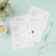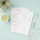 Modern och professionell falsk guld prislista flygblad med en enkel och minimal design med ditt namn i ett elegant skript och modern sans serif-teckensnitt. Mallen innehåller flera uppdelade sektioner för dina tjänster i en minimalistisk layout. Baksidan har din kontaktinformation och valfri QR-kod. Om du föredrar det kan QR-koden tas bort i designredigeringsverktyget.