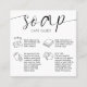 Modern Soap Care Cards med elegant, typsnitt och vårdikoner. Denna minimala handbok för omhändertagande av soap pub, svart och vit, innehåller stegvis information om hur man bäst användor och förvarar handgjord tvål pub. Lägg till din logotyp, tack för ditt meddelande och din affärsinformation för att få anpassningsbarnas inmatningskort från paket.
