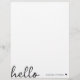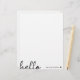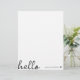 En minimal brevhuvudsdesign med ett handskrivet skript med stor typografisk citattecken "hej" parad med ditt eget namn och ett enkelt svart hjärta. Designad i ett modernt ministiskt stil i rent svart och vitt. Perfektens personlig-gåva eller tillbehör när som helst på året!