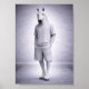 A minimalist anthropomorphic horse styled in a casual modern outfit, captured in a clean runway-inspired setting. This artwork blends understated humor with contemporary aesthetic simplicity, creating a calm yet visually striking statement piece for modern interiors.