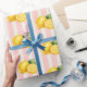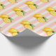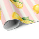 A charming and versatile bridal shower gift wrapping paper featuring soft peach and cream vertical stripes scattered with bright Italian lemon motifs and fresh botanical leaf accents. The warm peachy stripe pattern repeats seamlessly across the sheet, creating a cohesive, gift-ready surface that wraps beautifully around any shape or size. The lemon illustrations are distributed naturally throughout the design, adding a cheerful citrus energy to the overall pastel palette that feels instantly festive, Italian, and celebration-ready.