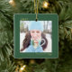 Detta prydnadsämne är enkelt men vackert. Det innehåller ditt foto i grönt ram med ord Joy i det övre lämnat hörnet och din familj namn eller namnteckning tillsammans med året i högerna i grund i guld. Konstruktionen är minimalistisk och ren. Baksidan visar den upprepade freden i ord, kärlek, glädje och ljus. Underbart julklapp eller helgdag memento.