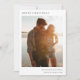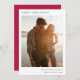 Ett minsta bildkort av snyggt med klassisk typografi "God jul" i svart på en ren, enkel, minimalistisk vit helgdag och en röd rik färg på motsatt sida. Fotot, Julhälsningar och namn kan enkelt anpassas för personlig beröring. En enkel, minimalistisk och contemporary julklapp som utmärker den här julhelgen! Bilden som visas är avsedd att illustreras och ersättas med ett eget foto. Platshållarbilden består av ett par som går på stranden med en solnedgång.