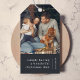En snyggt modern märkre för fotopresenter med ett klassiskt typografiskt citat "ha en underbar jultid" med en skiljelinje och namn för familjen med en lodrät textorientering i vitt. Konstruktionen har ett skifferliknande grått-inslag i färg och är i en skandinaviskt stil. Fotot, hälsning och namn kan enkelt anpassas efter en så unik design som du. Ett trendig, minimalistiskt och contemporary för att visa ut den här julhelgen! Bilden som visas är endast avsedd som illustration för att ersättas med ett eget foto. Platshållarbilden består av en familj i jultomten med mamma, pappa, baby och en hund framför julgran och öppen eld.