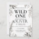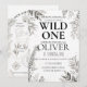 Minimalistisk djungel Wild One födelsedagsdesign med elegant grönska och modern botanisk stil.