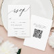 Anpassningsbar med vad som helst för evenemanget, inklusive måltidsalternativ. Öppna redigeraren för fullt på en tablett eller PC om du vill lägga till eller ta bort inslag för måltider. Alternativet QR-kod på baksidan