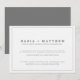 Modern, mycket enkel grafisk mörk grått och vit bröllopsinbjudan. Perfekt för ett enkelt minimum eller modernt bröllop. Redigera den här inbjudan med din egen information om namn och bröllop. Andra matchande artiklar tillgängliga. Designad av www.mylittleedenweddings.com