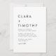 Den här moderna, minimala bröllopsinbjudan lyfter contemporaryns elegans med sitt eleganta svarta och vita tema. Konstruktionens enkelhet skapar ett tidlöst utseende som är perfekt för par att söka en minimal, polerad röra för deras speciella dag. Det monokromatiska färg-systemet tillför en känsla av sofistikering av chicen, medan det rena linjer och de minimalistiska detaljerna förkroppsligar en klassisk estetik. Inbjudan är perfekt för par som skulle uppskatta en förfinad, contemporary stil som kommer att ange tonen för en minnesvärd och snyggt bröllop firande! Med en QR-kod på baksidan för information om OSA och detaljer erbjuder biet ett underbart allt i en enda inbjudan till paket på ett enda kort!