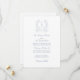 Den här bröllopsinbjudan innehåller initialer som omges av ett romantiskt botaniskt lager med elegant skript i en dammig blå nyans. Denna punkt ingår i vår Kami-inbjudan K310. Besök vår butik för att se samordnande punkter.
