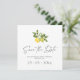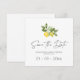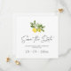 Minimal LemoNnär Greenery Spara datum-kort - Meddela din stora dag med detta minimalistiska spara datum-kort med en delikat citrongul och grön illustration. Den rena designen och mjuka färgpaletten gör det perfekt för medelhavs-, sommar- eller utomhusbröllop i trädgården.