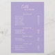 Modern och professionell lila / lila prislista flygblad med en enkel och minimal design med ditt namn i ett elegant skript och modern sans serif-teckensnitt. Mallen innehåller flera uppdelade avsnitt för dina tjänster i en minimalistisk layout. Baksidan har din kontaktinformation och valfri QR-kod. Om du föredrar det kan QR-koden tas bort i designredigeringsverktyget.