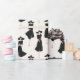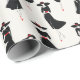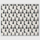 A refined repeating pattern of minimalist fashion figures drawn in expressive line art. Faceless silhouettes in iconic black dresses with bold red details create a stylish, modern aesthetic with Parisian flair.