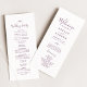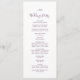 Detta minimala bröllopsprogram av äggplanta i löv är perfekt för en boho bröllop. Utformningen har en enkel grey löv silhouette i en romantisk mörk lila färg med minimalistisk bohemisk trädgård stil. Ta med parets namn, datum och plats för bröllop, tack, serviceordning, bröllopsfest och ett minnesmärke "i kärleksfullt minne" som tillval.