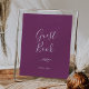 Denna minsta poster lila av löv-bär-gästen bok är perfekt för en boho-bröllop. Utformningen har en ren grey löv silhouette i ett romantiskt sommarviolett färg med minimalistisk bohemisk trädgård stil.