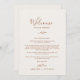 Dessa minimala löv boho-kort är välkomna brev och färdkort är perfekter för en boho bröllop. Utformningen har en ren grey löv silhouette i jordens brända orange på en gräddbakgrund med minimalistisk ökenbohemi stil. På kortets framsida finns ett välkommet brev och på kortets baksida finns en rutt i bröllop. Dessa anteckningar är perfekt för destinationsbröllop och hotellgästväskor.