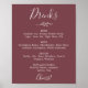 Minimal Löv | Burgundy Bröllop Drinks Menu Poster