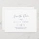 Det här minsta dammblåa vågrät i löv för att spara datumkortet är perfekt för ett elegant bröllop. Konstruktionen har en enkel grey silhouette i ljusskifferblått med klassiskt minimalistiskt stil.