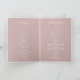 Detta minimala löv dammiga ro-uppfällda bröllopsprogram är perfekt för en boho bröllop. Den romantiska designen har en enkel grey silhouette i en solid rosa med klassisk minimalistisk boho stil.