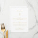 Elegant enkel minimal meny löv guld och vit 5 x 7-tums Bröllop-meny med Bord-plattmidmeny i modern skriptkalligrafi. Du hittar en samling med matchande artiklar och storlek 4 x 9 tum i vår butik VelvetPaperCo.