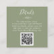Detta minsta grönt för QR-kod bröllop-detaljförslutningskort för löv är perfekt för en boho bröllop. Utformningen har en enkel grey löv silhuett i en dammig grönt färg med minimalistisk bergsboho stil.