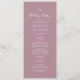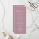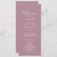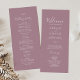 Detta minimala bröllopsprogram i löv är perfekt för ett boho bröllop. Utformningen har en enkel grey löv silhouette i en romantisk lila rosa färg med minimalistisk bohemisk trädgård stil. Ta med parets namn, datum och plats för bröllop, tack, serviceordning, bröllopsfest och ett minnesmärke "i kärleksfullt minne" som tillval.