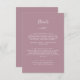 Detta minsta visitkort för detaljer om löv är perfekt för en boho bröllop. Utformningen har en enkel grey löv silhouette i en romantisk lila rosa färg med minimalistisk bohemisk trädgård stil.