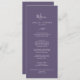 Denna minimala lila för löv-plommon och dryckesmenykort är perfekt för en boho bröllop. Juvelfärgskonstruktionen har en enkel grey löv silhouette i en mörk blått violett lila med minimalistisk boho stil. Den här menyn innehåller middagsmenyn på ena sidan och dryckesmenyn på baksidan. Den kan användas för bröllopsmottagning, repetitionsmiddag eller vad som helst.