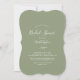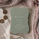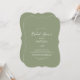 Denna minimala grönt inbjudningskort för möhippan i löv är perfekt för en boho-möhippa. Utformningen har en enkel grey löv silhuett i en dammig grönt färg med minimalistisk bergsboho stil.