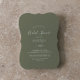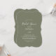 Detta minimala mörk grönt inbjudningskort för möhippan i löv är perfekt för en boho-möhippa. Utformningen har en enkel grey löv silhuette på oliv grönt med minimalistisk bergsbohemi stil.