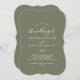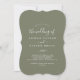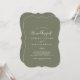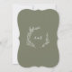 Denna minimala inbjudan till ett mörk grönt löv-monogram-bröllop är perfekt för en boho bröllop. Utformningen har en enkel grey löv silhuette på oliv grönt med minimalistisk bergsbohemi stil. Anpassa baksidan med det första initialerna av bruden och brudgummen.