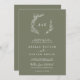 Denna minsta mörk grönt inbjudan till QR-kodbröllop i löv är perfekt för en boho bröllop. Utformningen har en enkel grey löv silhouette i mörk hunter grönt med minimalistisk bergsboho stil. Spara papper genom att inkludera en QR-kod för gästen för att visa information, OSA eller båda.