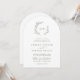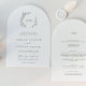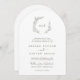 Den minsta oliv grönt löv-bågen i en bröllopsinbjudan är perfekt för en boho bröllop. Utformningen har en enkel grey löv silhuette på oliv grönt med minimalistisk bergsbohemi stil. Anpassa med parets första initialer. Spara papper genom att inkludera uppgifterna på baksidan av bröllopsinbjudan i stället för på ett separat djurutrymmeskort. Ta även med OSA-informationen om din gäst svarar elektroniskt (valfritt).
